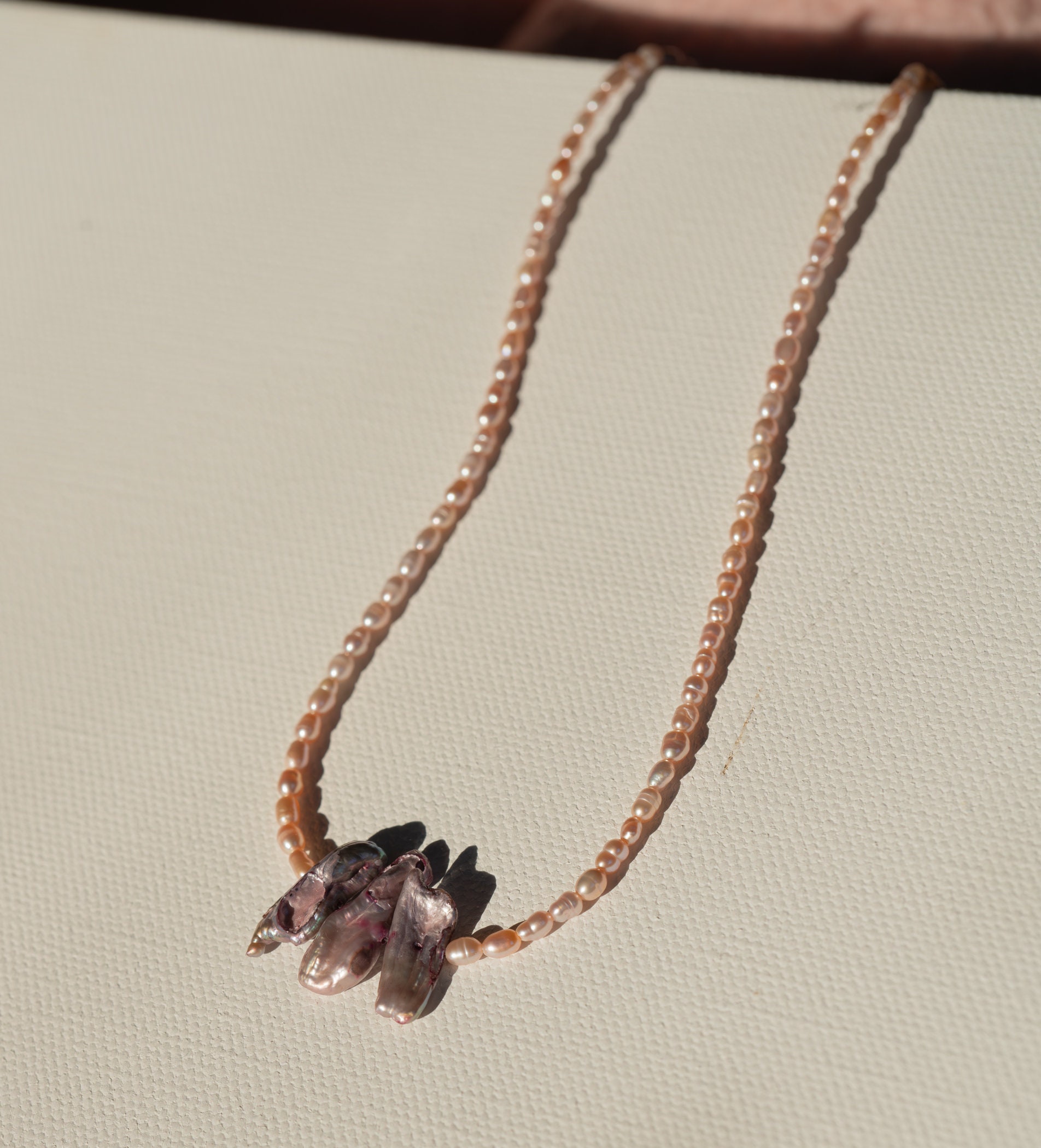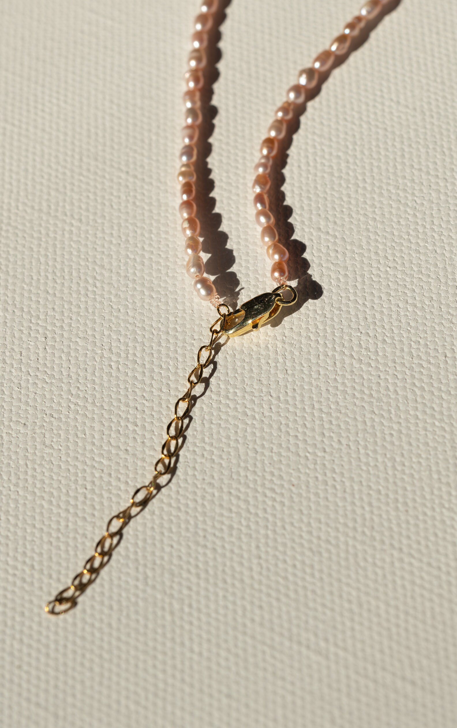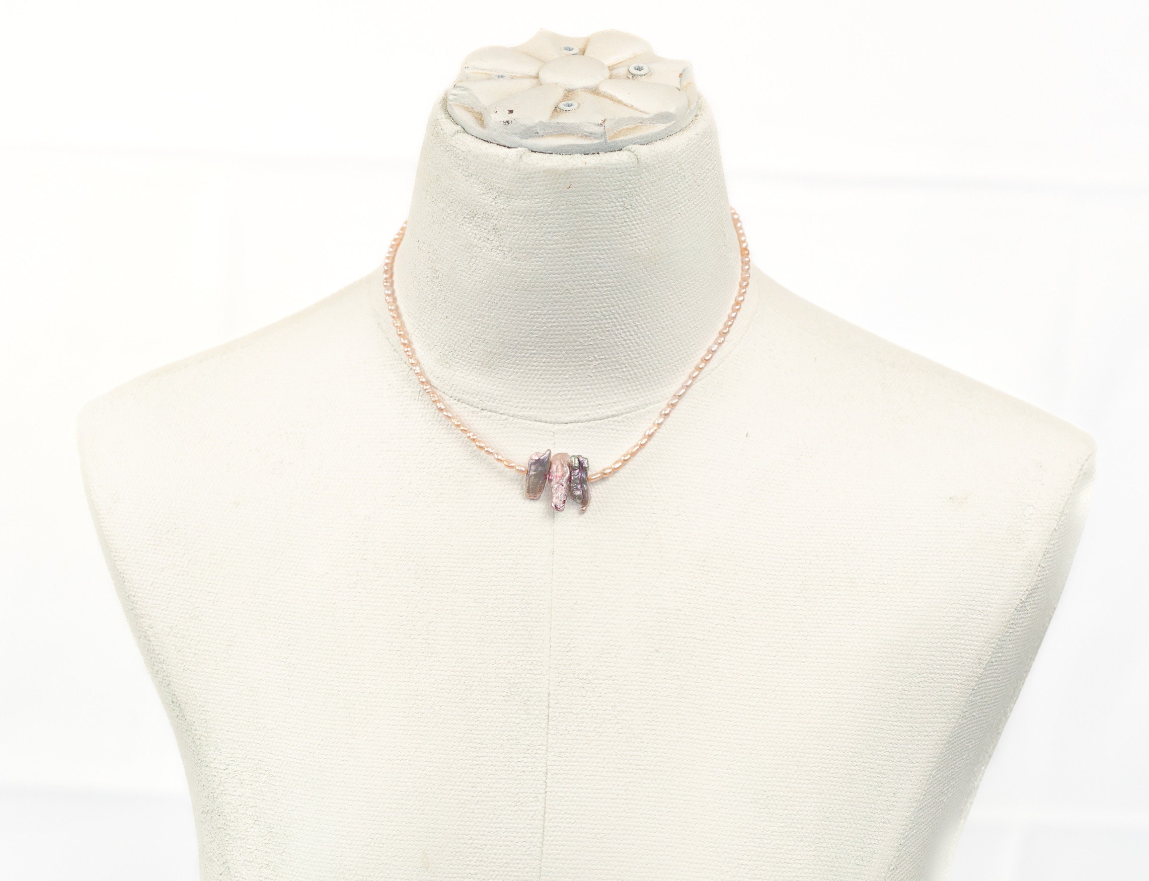 A mix of Lavender/Pink Hue Freshwater Pearls create this adjustable choker/collar length necklace.