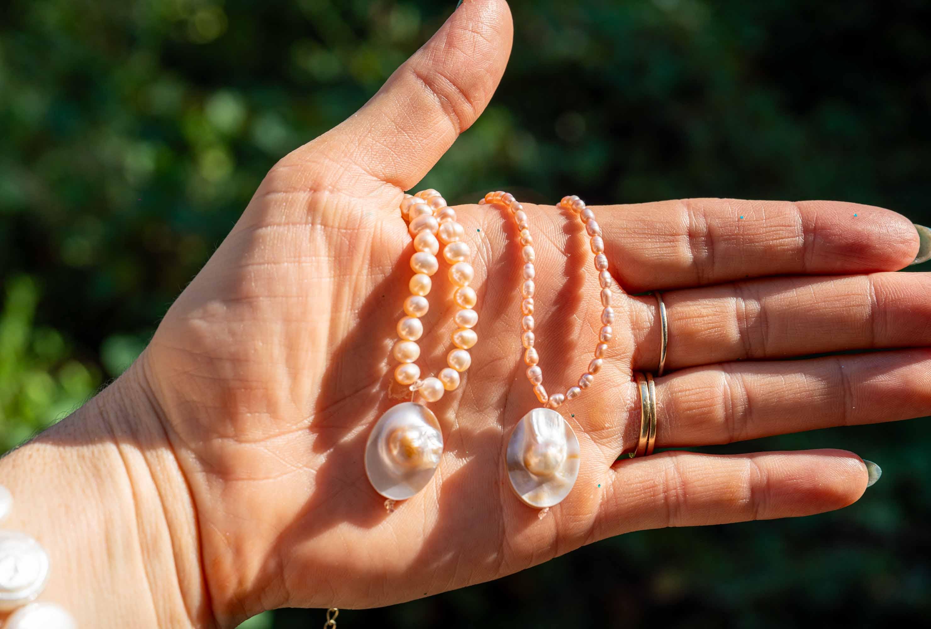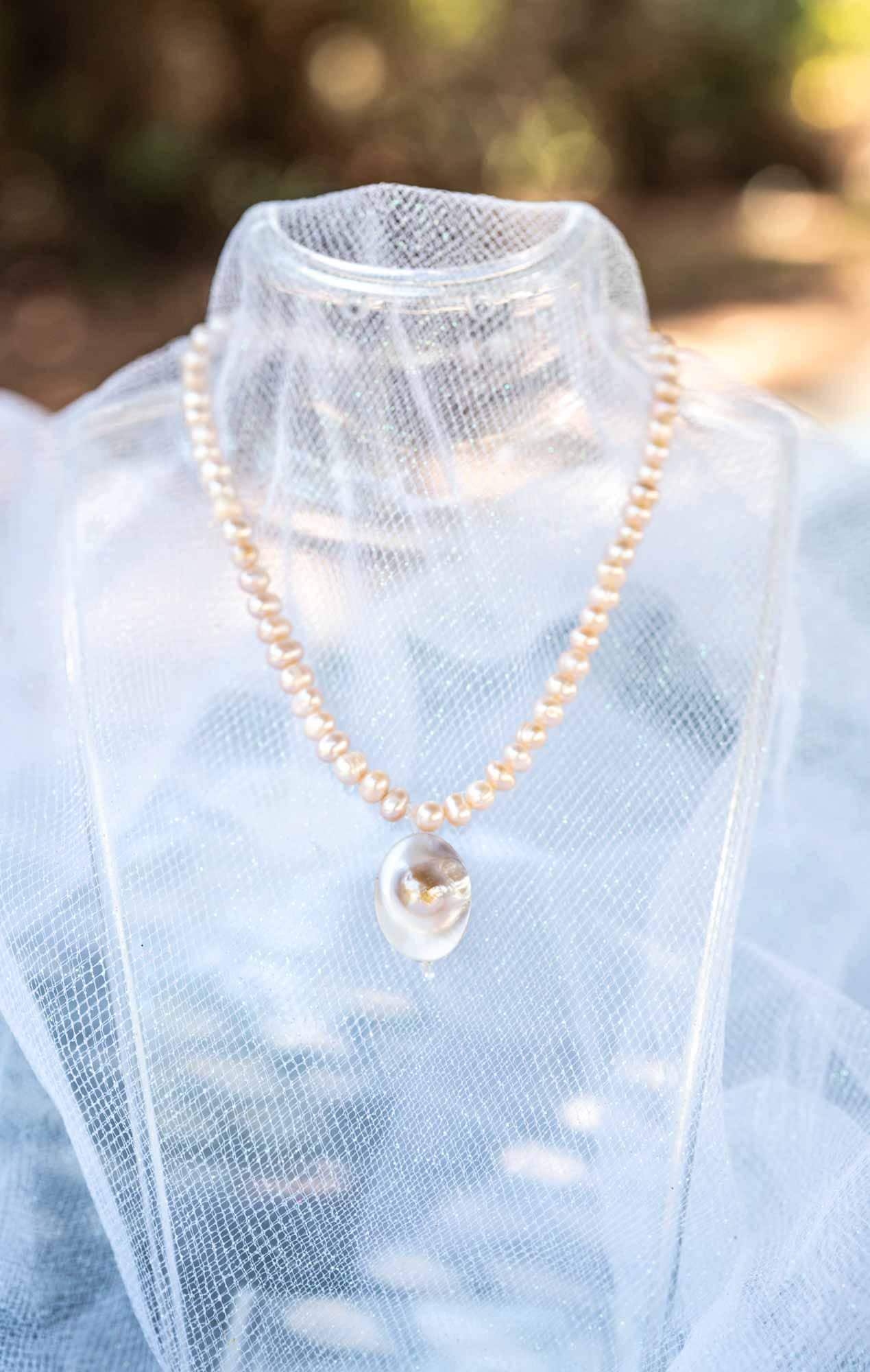 This necklace has a centerpiece that is made from Mother of Pearl. This oval pearl piece resembles a locket. Inspired by Feyre from Acotar.