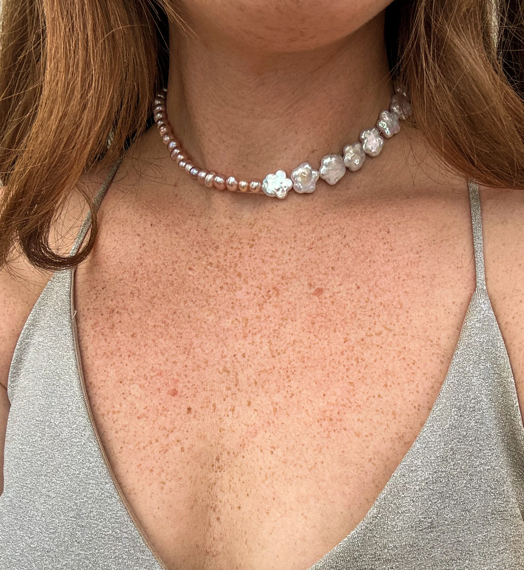 MerMadeGems › Flower Power/Pink Pearl Choker Image 1 of 3 Image 2 of 3 Image 3 of 3 Flower Power/Pink Pearl Choker $129.99 This necklace consists of half pink freahwater pearls and half white flower shaped freshwater pearls. Clasp: Select Clasp 18k gold adjustable Sterling silver adjustable Fishing clasp Size: Select Size Small/Medium Medium/Large Quantity: Purchase Added! This necklace consists of half pink freahwater pearls and half white flower shaped freshwater pearls. Reviews Reviewer Name Review Date Star Rating Description Posted on Etsy Product Show More You Might Also Like Quick View “Coral” Children’s/Adult Full Strand Freshwater Pearl Necklace $64.99 Quick View Cross Shaped Freshwater Pearl/White Freshwater Pearl Choker $64.99 Quick View Jellyfish Pearl Choker $59.99 Quick View Ariel Inspired Pearl Necklace $74.99 Quick View Flower Pearl/Lavender Freshwater Pearl Choker $69.99