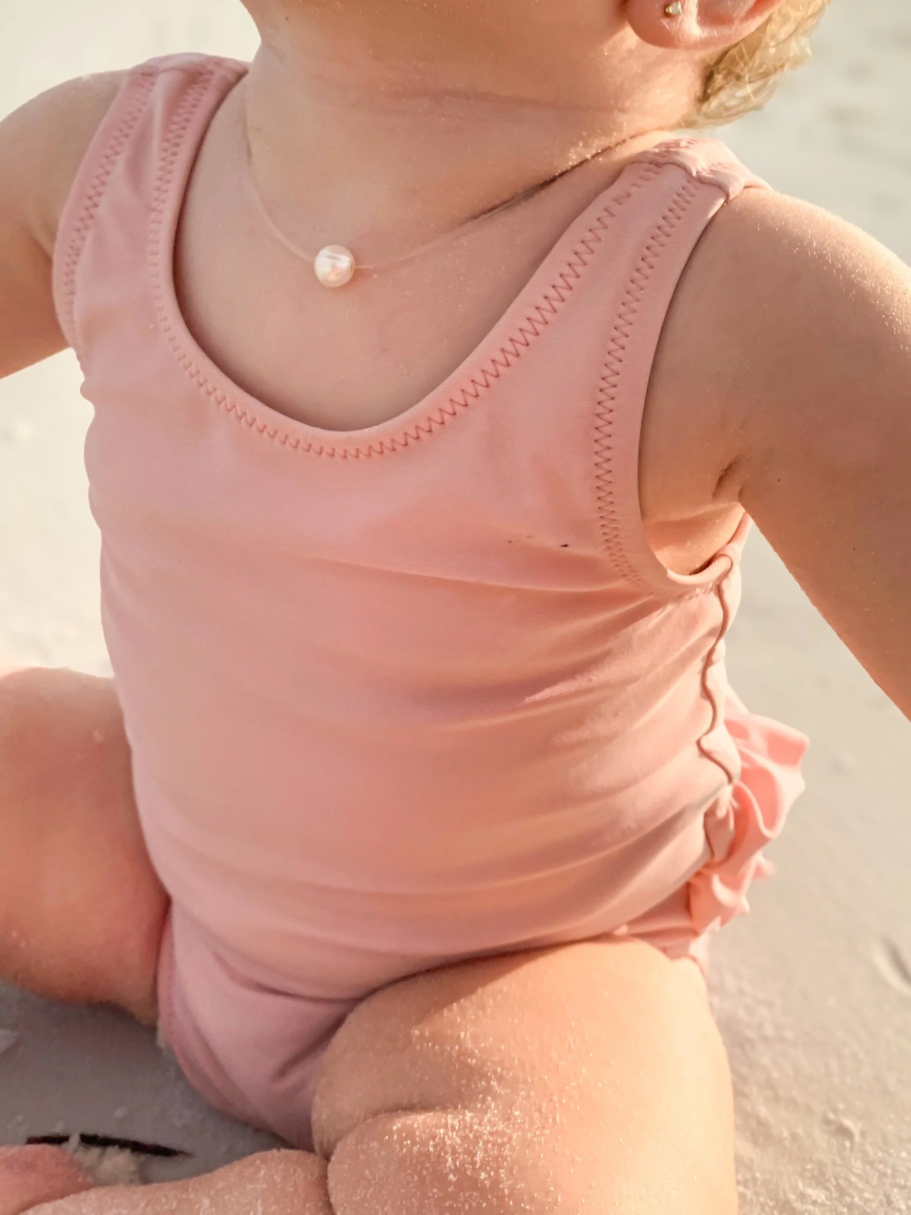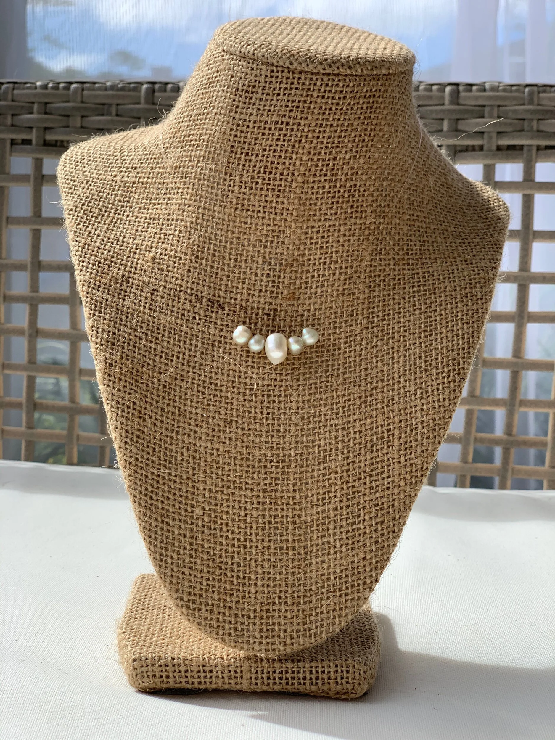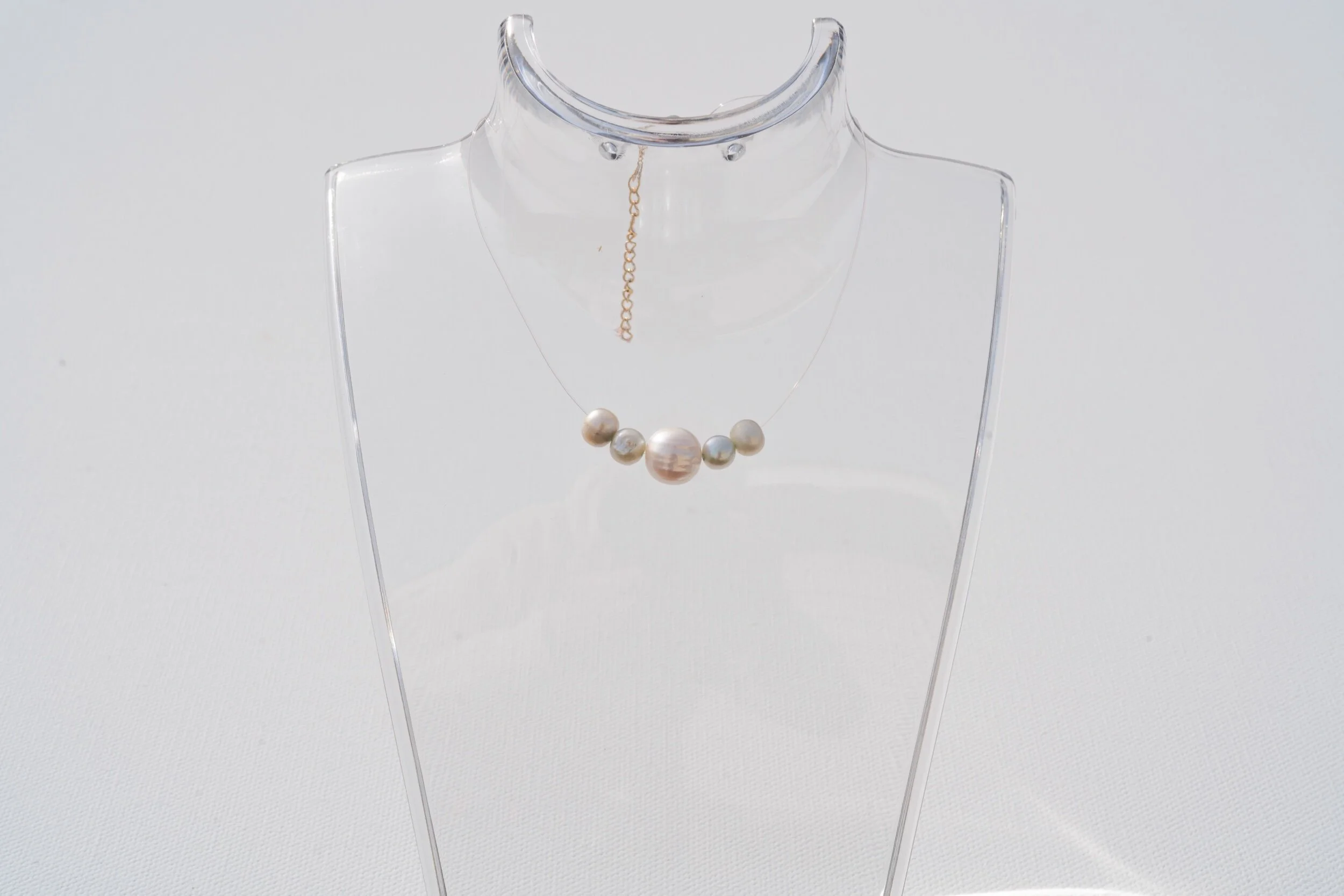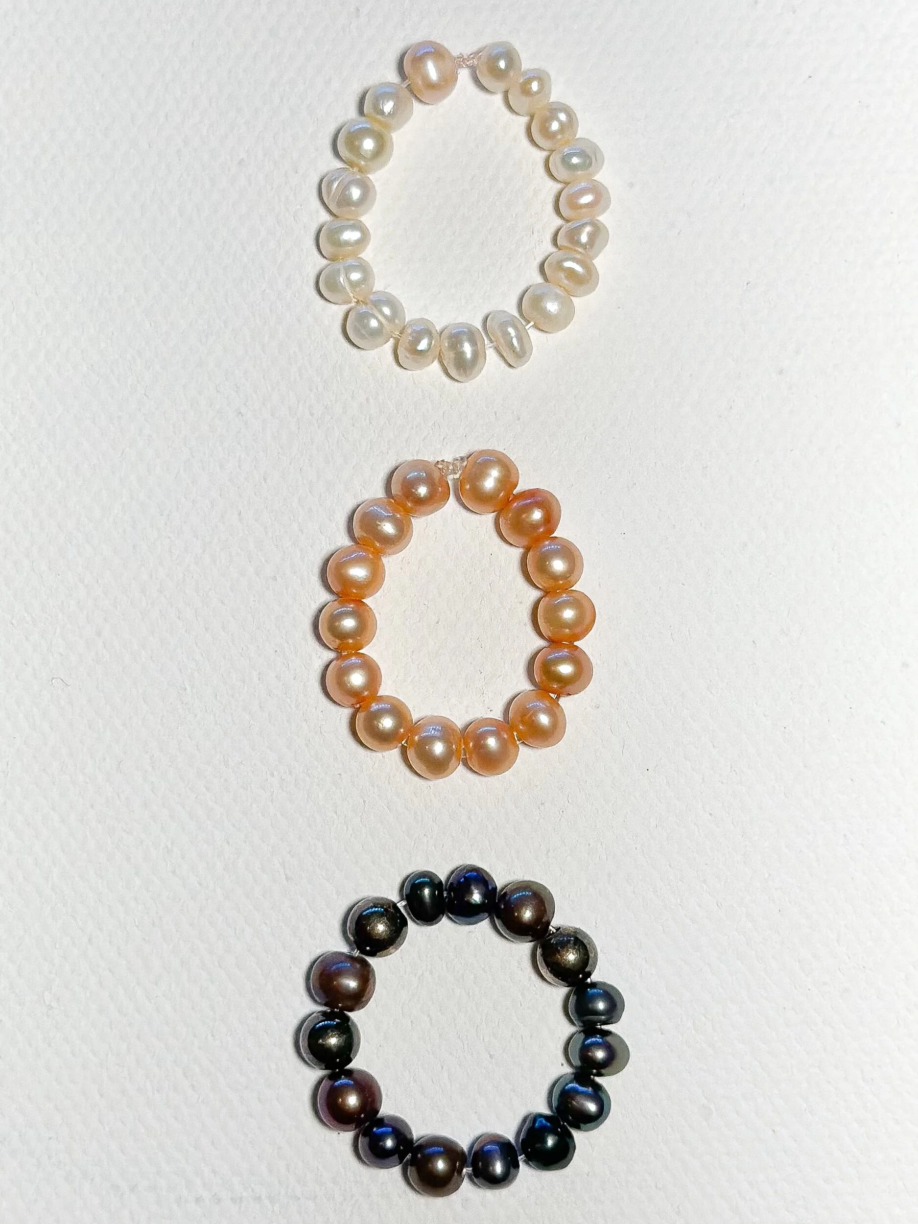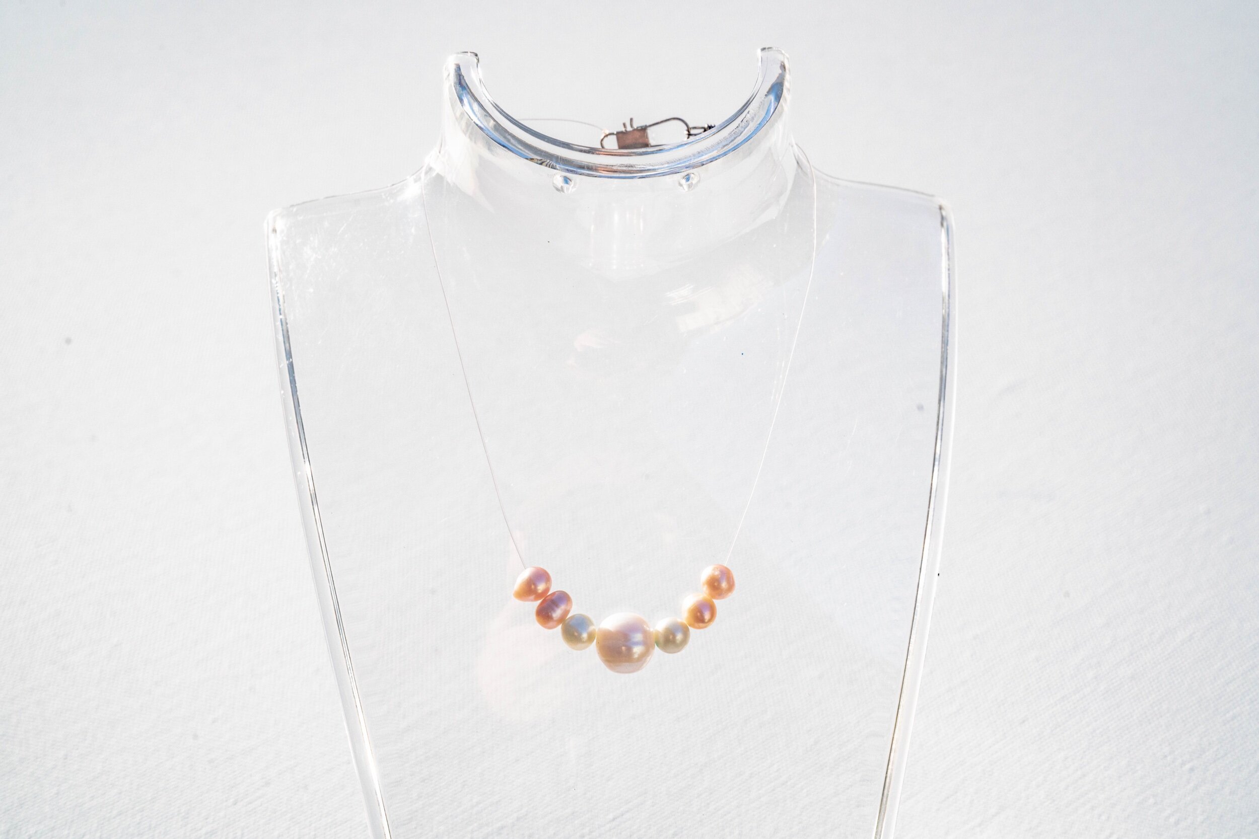 7 freshwater pearls strung on high quality fluorocarbon fishing line. Tied with the same materials gulf fishermen use to catch the hardest fighting fish in the Gulf of Mexico.