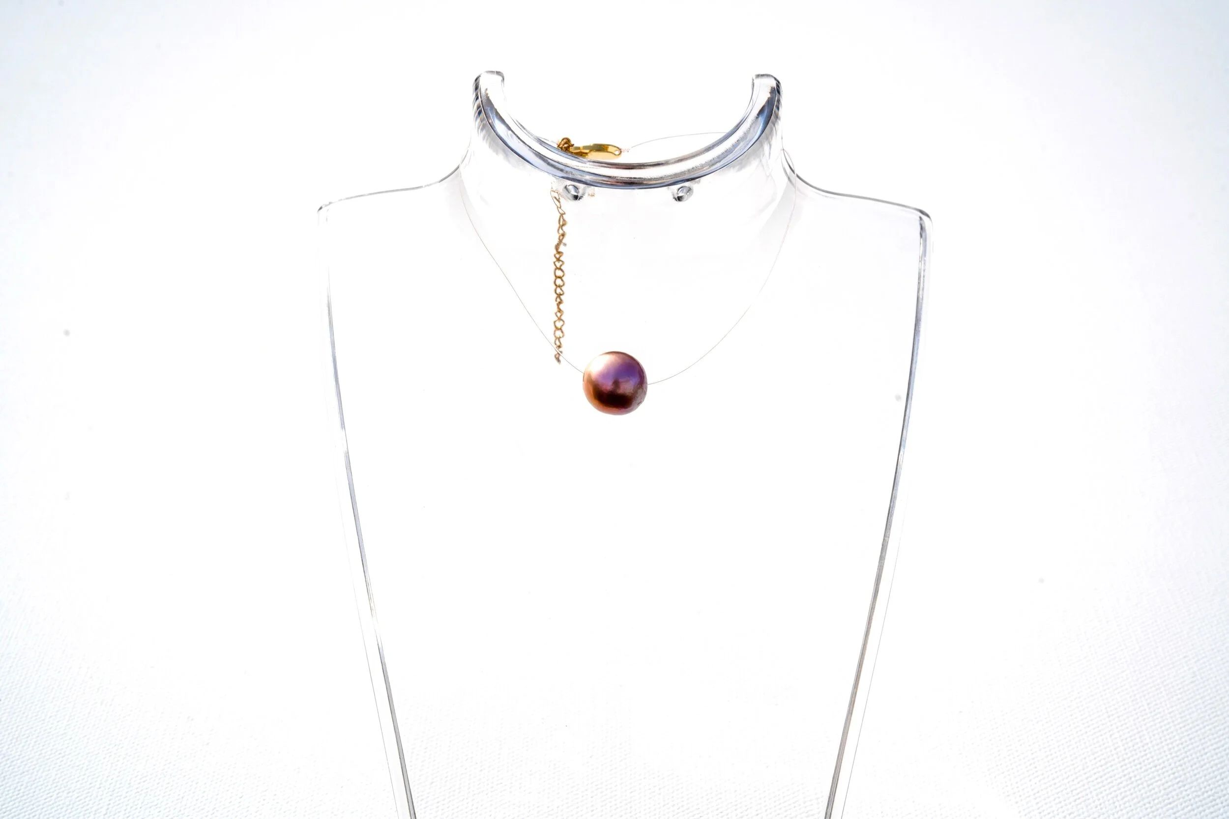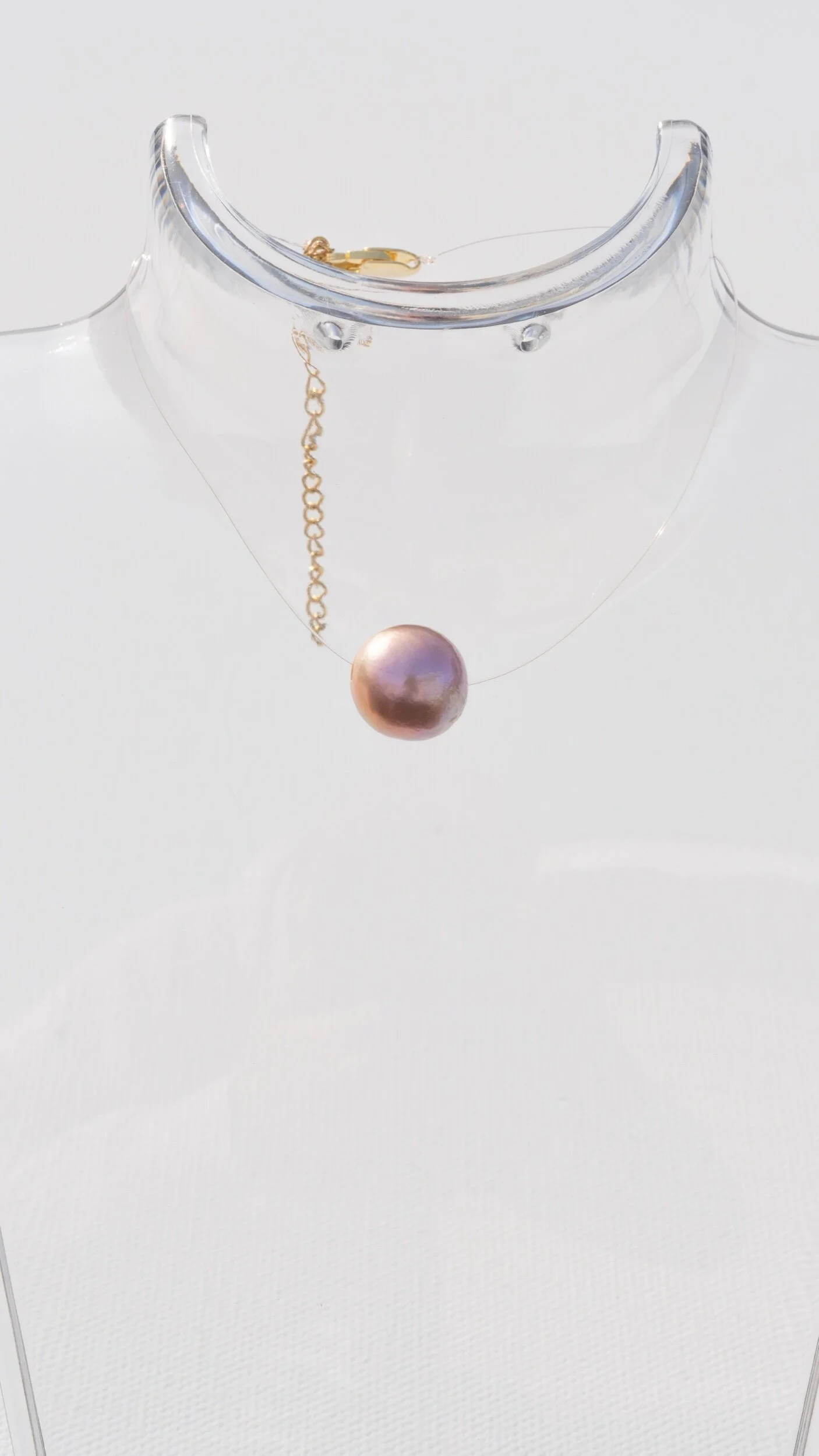 This necklace consists of one large lavender high quality floating freshwater pearl.