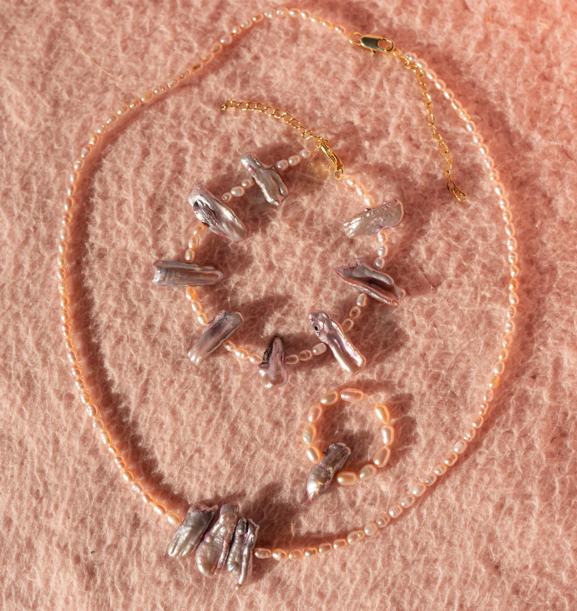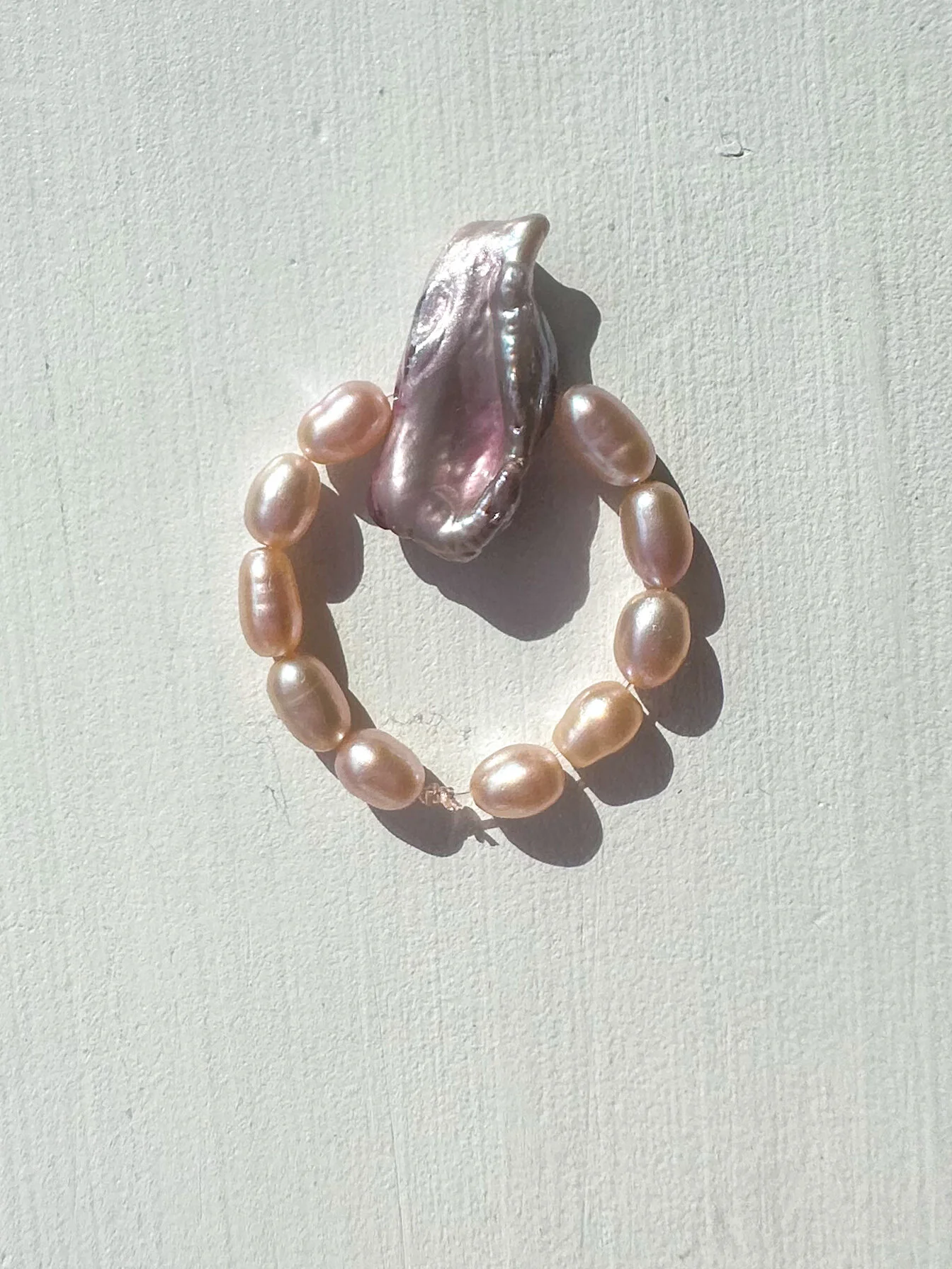 Lavender Baroque pearls alternating with tiny pink pearls make up this lovely little bracelet.